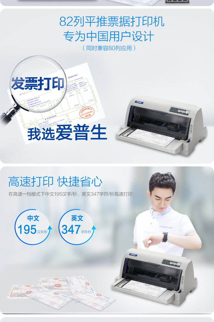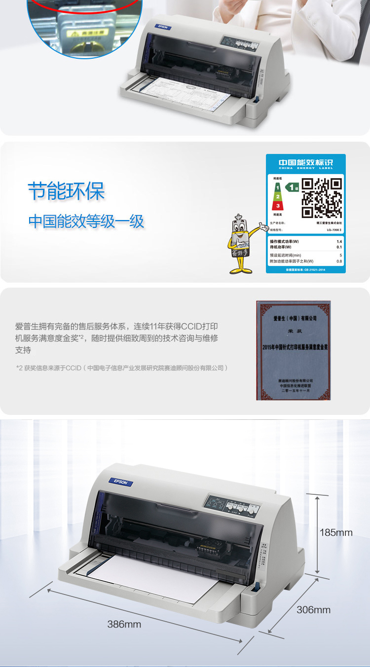 爱普生(EPSON)LQ-735KII 82列经典型平推票据打印机增强版