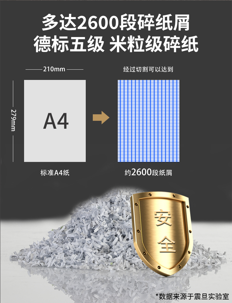 震旦AURORA 5级保密办公商用碎纸机(单次8张 持续60分钟 20L 可碎卡、光盘) AS0860CD