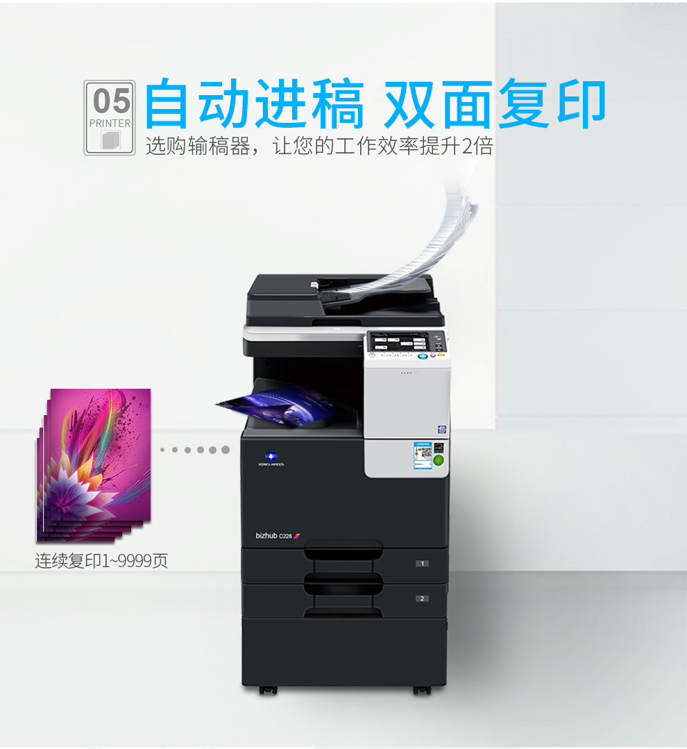 柯尼卡美能达 C226 A3彩色激光双面打印复印一体机 办公复合机 标配+输稿器+底柜