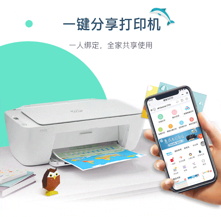 惠普(HP)DJ 2720 无线家用喷墨打印一体机 学生作业/手机/彩色打印,扫描,复印 2622升级款