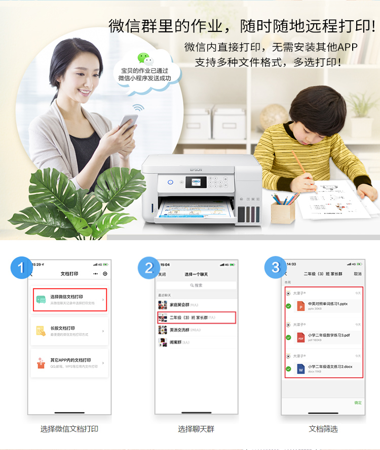 爱普生(EPSON)L4163 墨仓式 家庭打印/错题打印 A4彩色无线多功能一体机 (打印/复印/扫描/wifi)