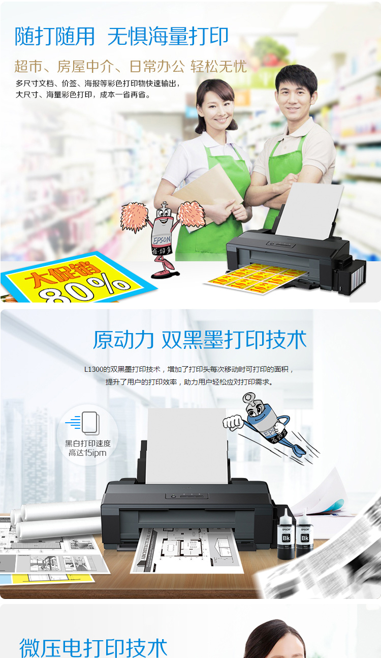 爱普生(EPSON)L1300 墨仓式 A3+高速图形设计专用照片打印机